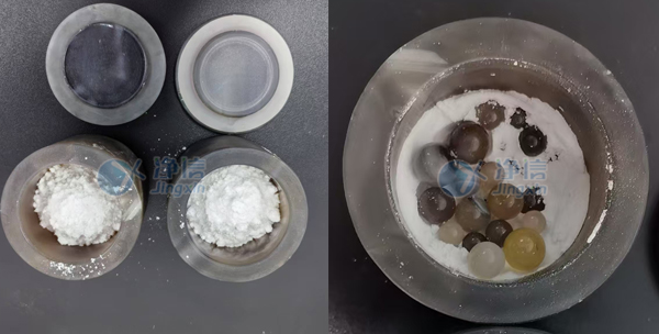 01、準備工作:行星式球磨儀JX-2G一臺、瑪瑙罐一套,研磨珠若干以及待研磨的氯化鈉樣本