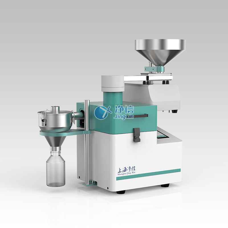 樣品從漏斗置入,下落的樣品在高速離心力的作用下,與高速旋轉的轉刀齒產生巨大的沖擊力,以此來對樣品進行預處理。之后樣品在轉刀與固定環篩之間被再次剪切、擠壓和摩擦,樣品尺寸小于環篩孔徑的,通過環篩進入圓形的收集盤內,從而完成樣品的粉碎。這種兩級粉碎的原理形成溫和高效的粉碎結果。由于粉碎效率高,樣品在研磨腔內停留的時間很短,因此可避免樣品性質的改變。