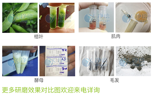 凈信研創的雙電機震蕩一體化設計,在短時間內可將各類動植物組織、土壤、菌類、細胞、古生物標本、毛發等樣品進行細胞破碎及勻漿。